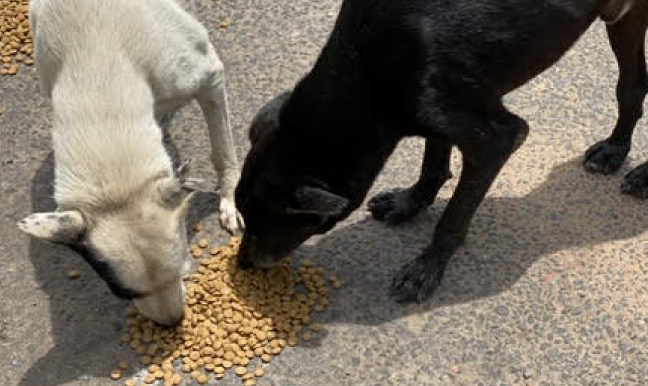 There are cats and dogs always in search for food to sustain them, and we take a little joy feeding them.